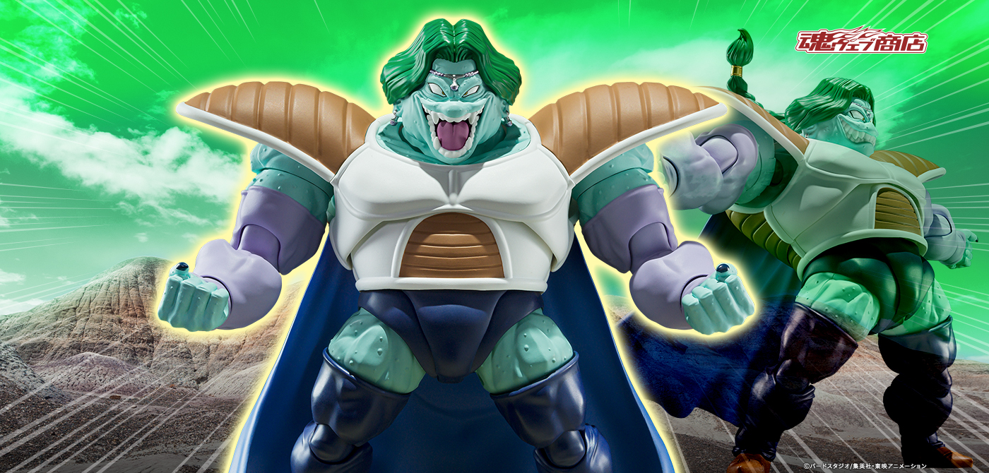 Zarbon - True Power - is now a roughly 6 inches tall S.H.Figuarts model with an incredible sense of size. In addition to the usual face, we have included three exchangeable facial expression parts - a shouting face, a face with clenched teeth, and a grinning face. The model’s movable structure uses the S.H.Figuarts Dragon Ball series standard, as well as the well-received shoulder armor structure. When the arms are drawn close, the armor can be shifted to the back of the model enabling you to strike the figure in even cooler poses. What’s more, you can move the base of the cape and you can recreate the hair fluttering in the wind with the exchangeable hair part accessory.