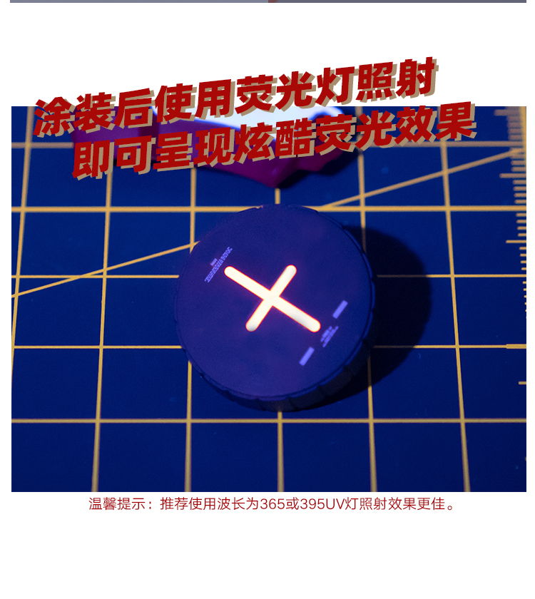 Hobby Mio Water-Based Fluorescent Color Marker produced under UV light will have a unique fluorescent effect.